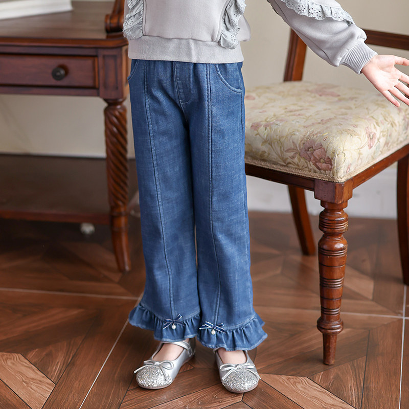 Boat Rat Girl Gvet Jeans Autumn Winter High Waist Thickening Ocean Pie Small Horn Pants Children Pants Little Girl Pants Long Pants