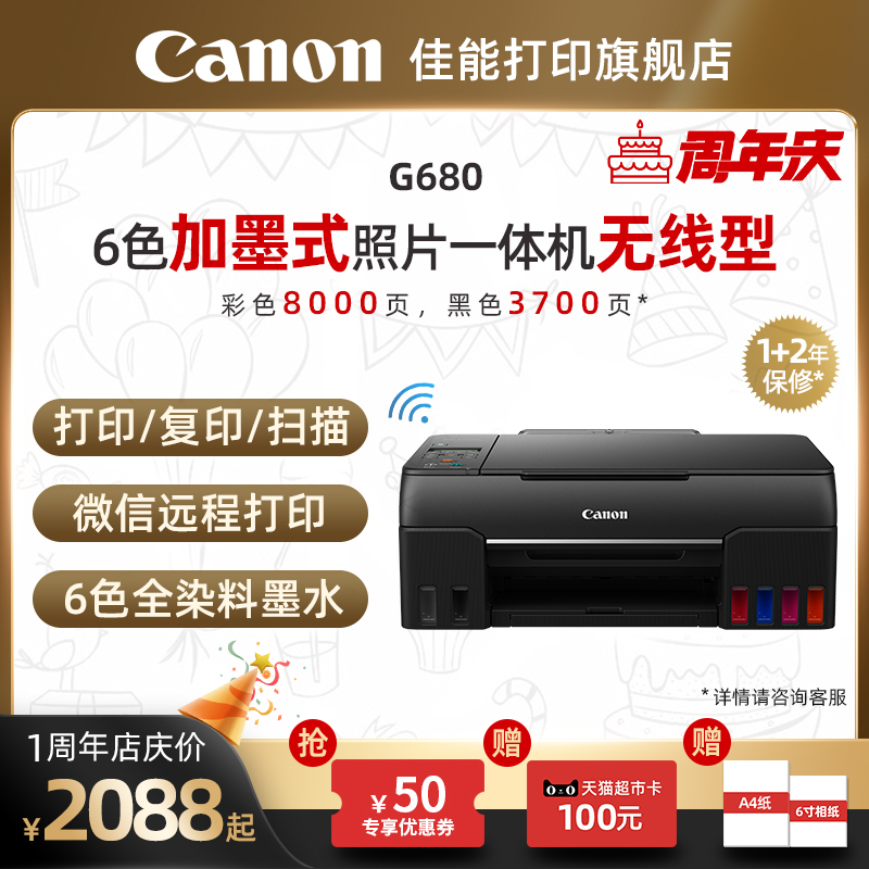 Canon G580 G680 Original Ink Color A4 Inkjet Printing Photocopying Scanning Printer All Students Home WeChat Remote Printing Photo Studio Design 6 Color Professional Photo Office