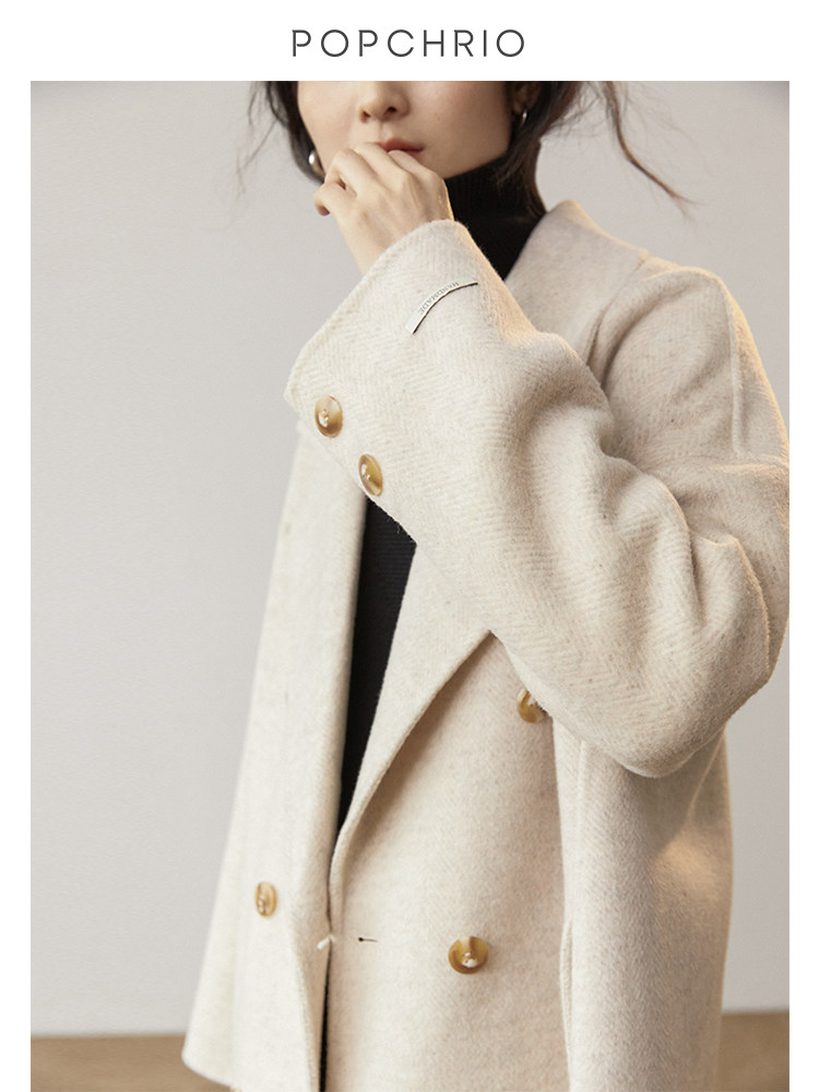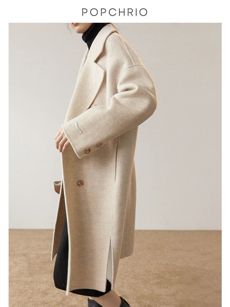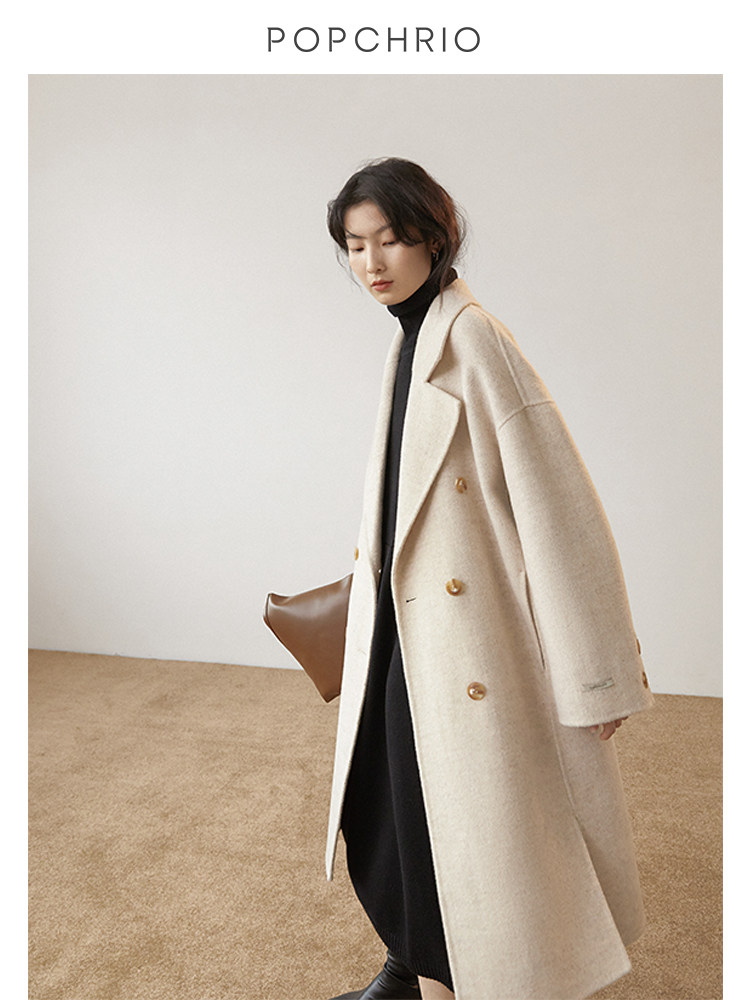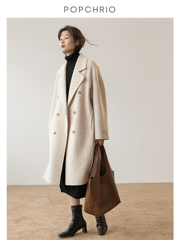Ou Ke Rui fluffy air texture ~ double-sided Hepburn coat medium and long version of cashmere woolen coat women's autumn