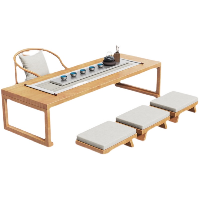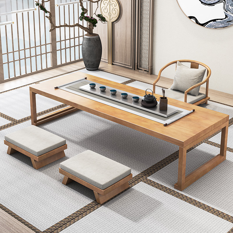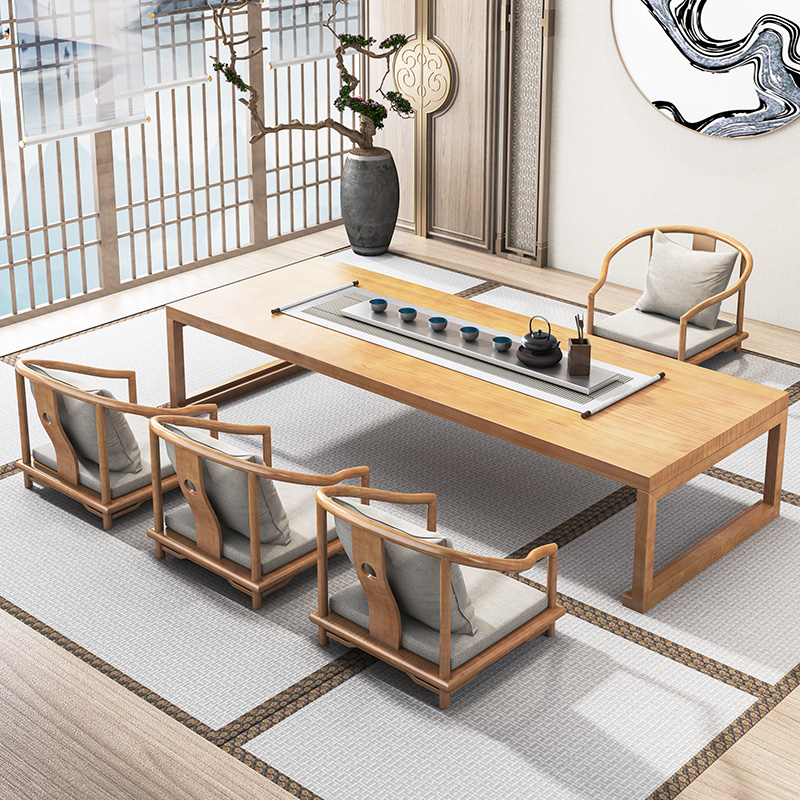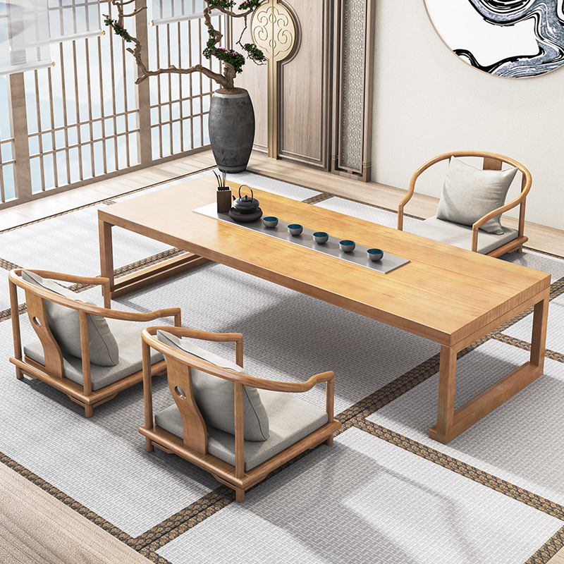 Japanese-style solid wood tea table and chair combination tatami kang table balcony coffee table sitting table tea room long Zen low tea table