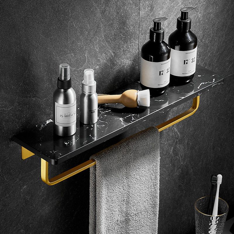 Bathroom marble shelve wall-mounted washstand Cosmetic Containing layer Shelf Makeup Room Hair Towel Rack Light Lavish