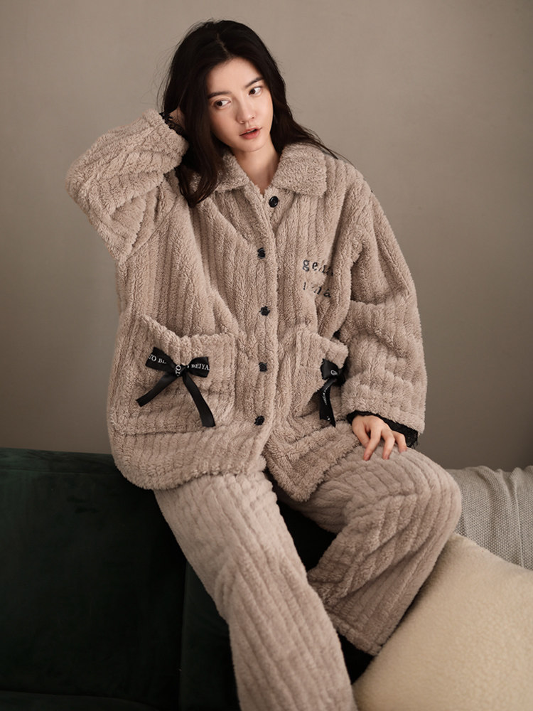 Coral Suede Pajamas Woman Autumn Winter Style Long Sleeve Home Clothing Han Edition Large Size Winter Plus Suede Thickened Warm Two-piece Style Suit