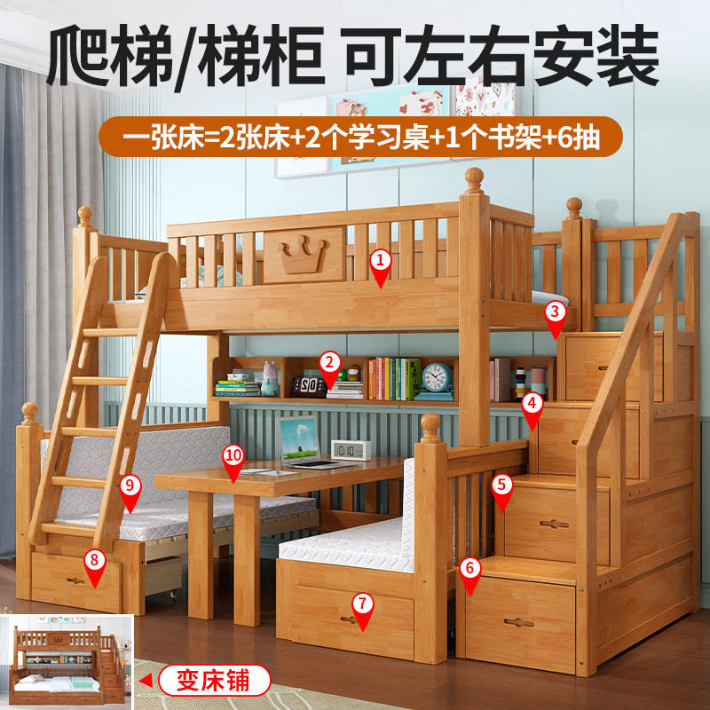 All solid wood children's bed bunk bed bunk bed with desk mother bed two-story adult bunk bunk oak high and low bed
