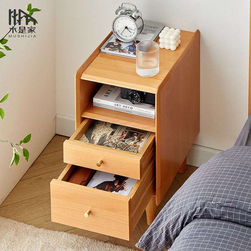 Solid wood ultra narrow bed head cabinet modern minimalist bedroom small bedside cabinet Nordic simple bedside small cabinet locker-Taobao