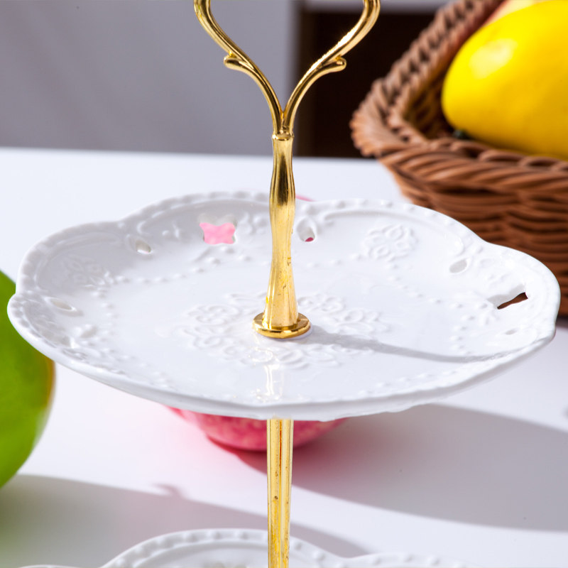 European Ceramic Double Layer Fruit Tray Candy Dessert Snack Tray
