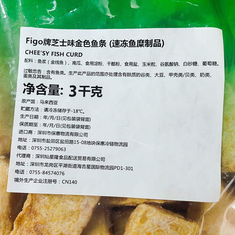 Special offer Figo brand cheese-flavored golden fish sticks cheese tofu 3Kg Malaysia imported sesame fish sticks for commercial use