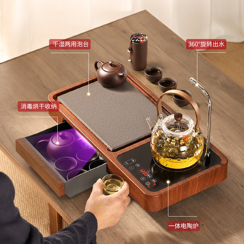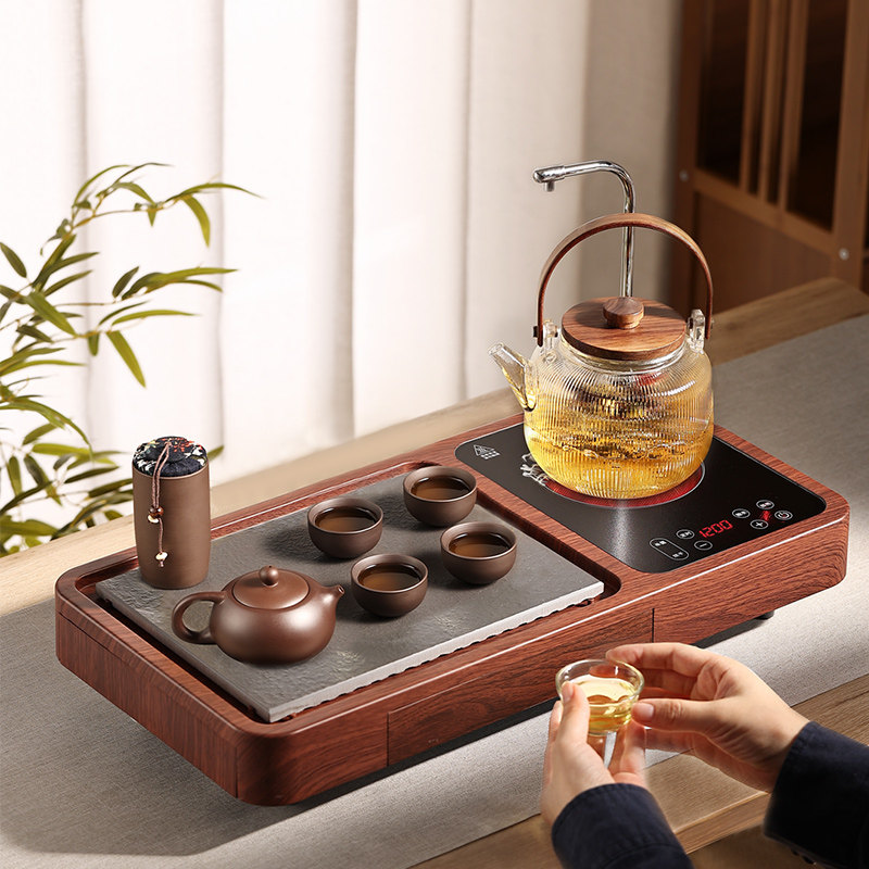 Deep wood grain upper water tea tray vertical stripe square pot deep wood grain upper water tea tray glass pot E-double biliary deep wood grain transparent round pot deep wood grain upper water tea tray Ti-beam pot red brown wood grain Sheung Shui tea