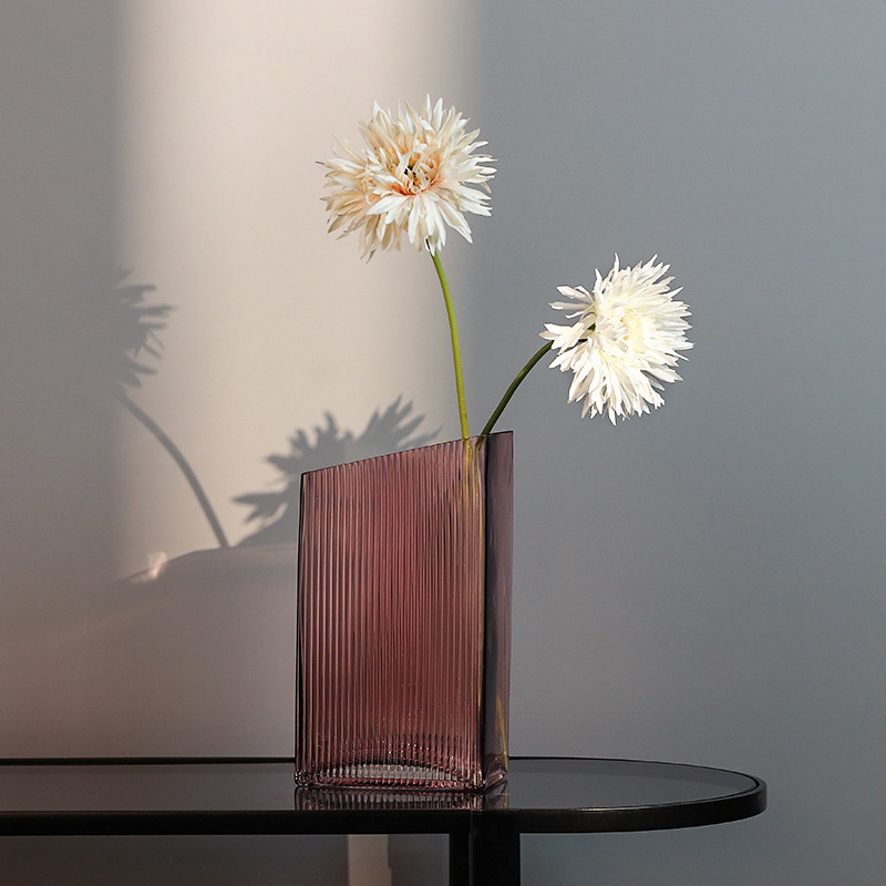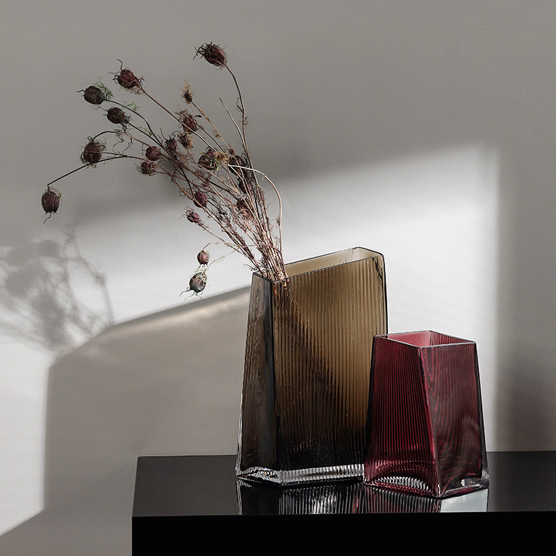 Dnnni Square Cylinder Vertical Striped Glass Vase Florator Nordic Wind Minimalist Home Living Room Genguan Hotel Ornament Swing