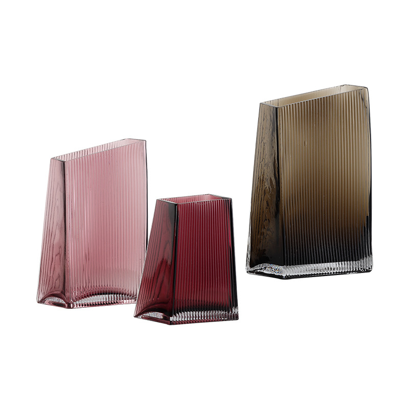 Square Cylinder Vertical Stripe Vase In Purple Square Cylinder Vertical Stripe Vase Purple Powder Square Cylinder Vertical Stripe Vase Brown Ash