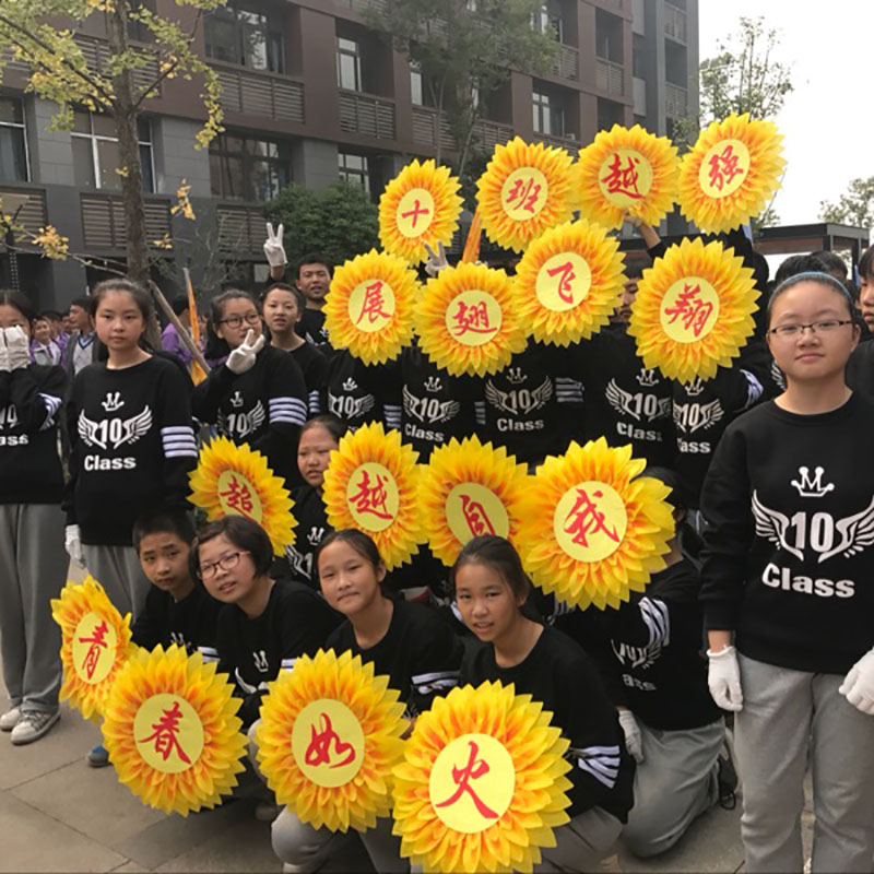 Sports meeting admission creative props junior high school smiling face sunflower flowers opening ceremony dancing elementary school students hand-held dance