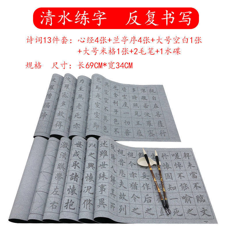 R60-(5-piece set of water writing cloth 3 brushes and water dish)C55-(7-piece set of water writing cloth 5 brushes and water dish)O59-(9-piece double set of water writing cloth 5 2 pens B44