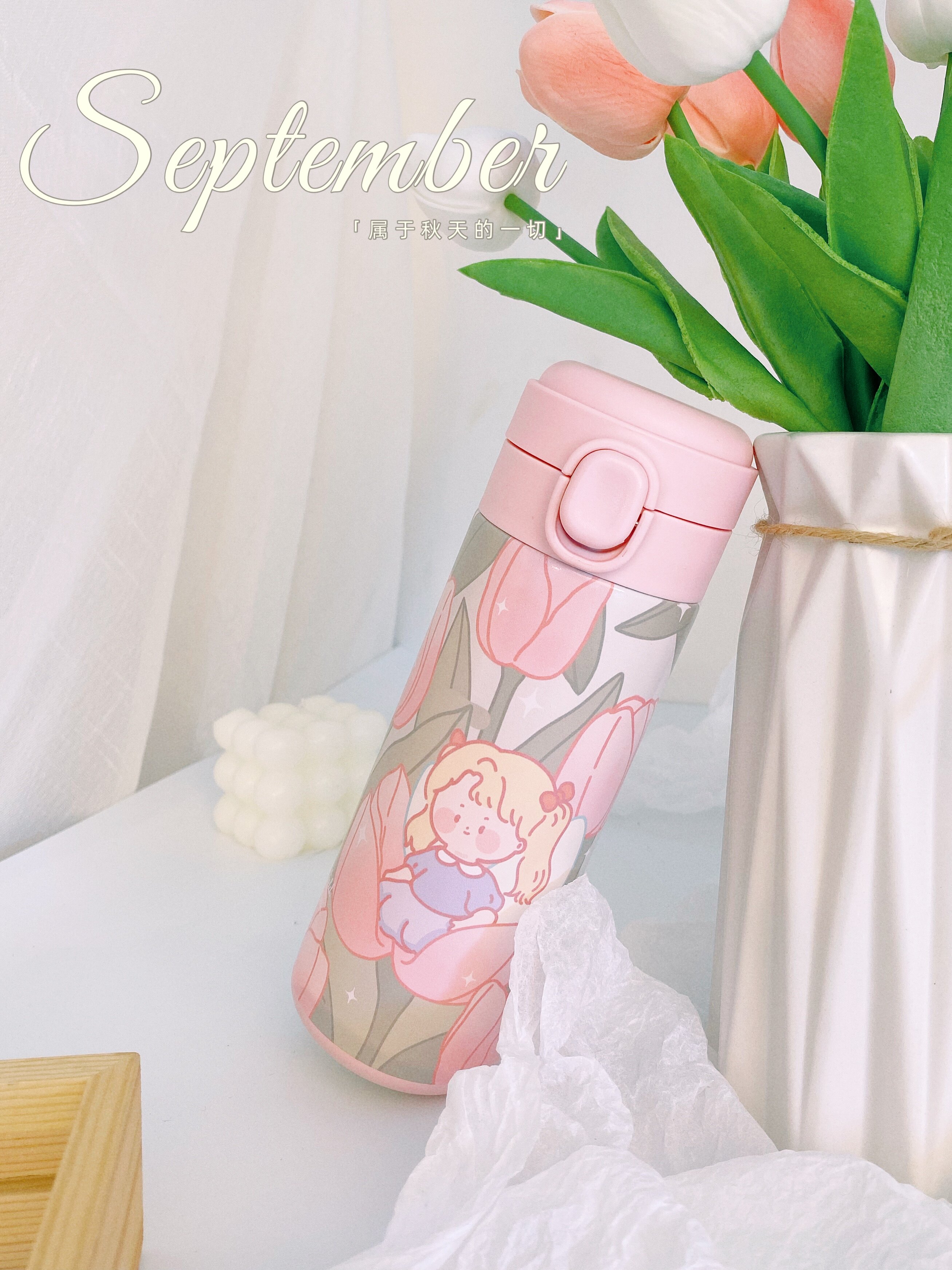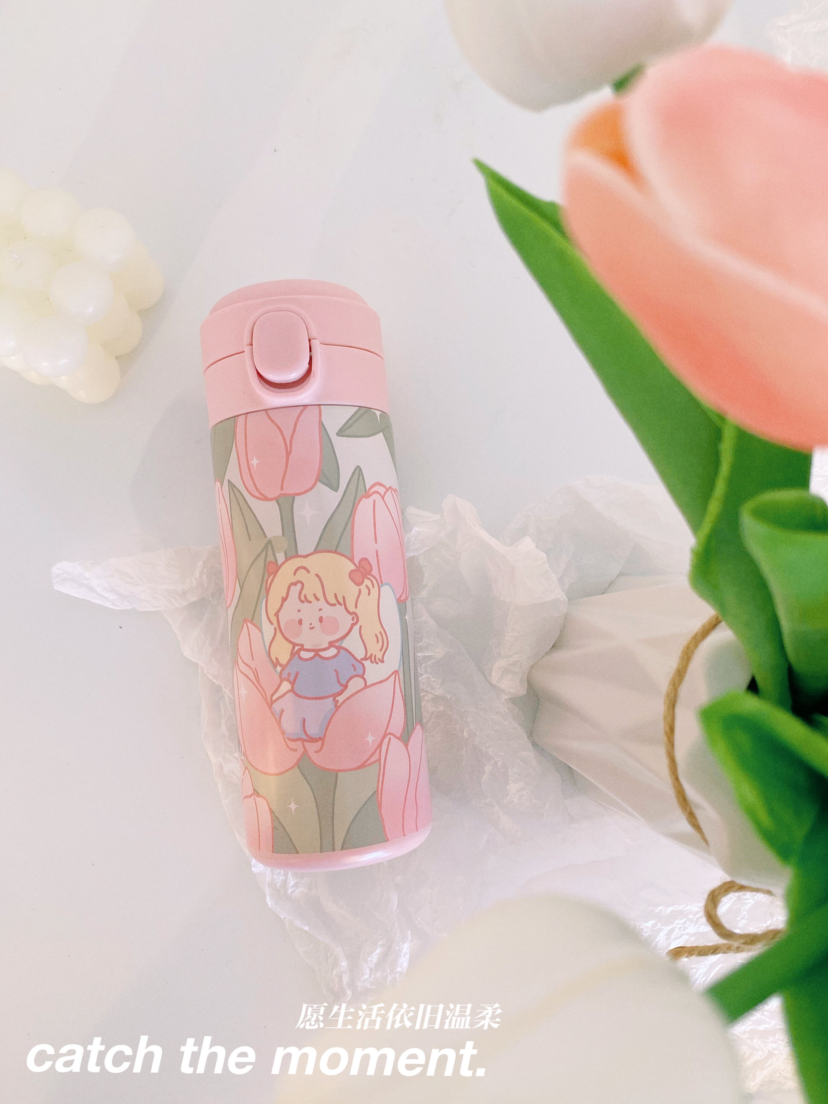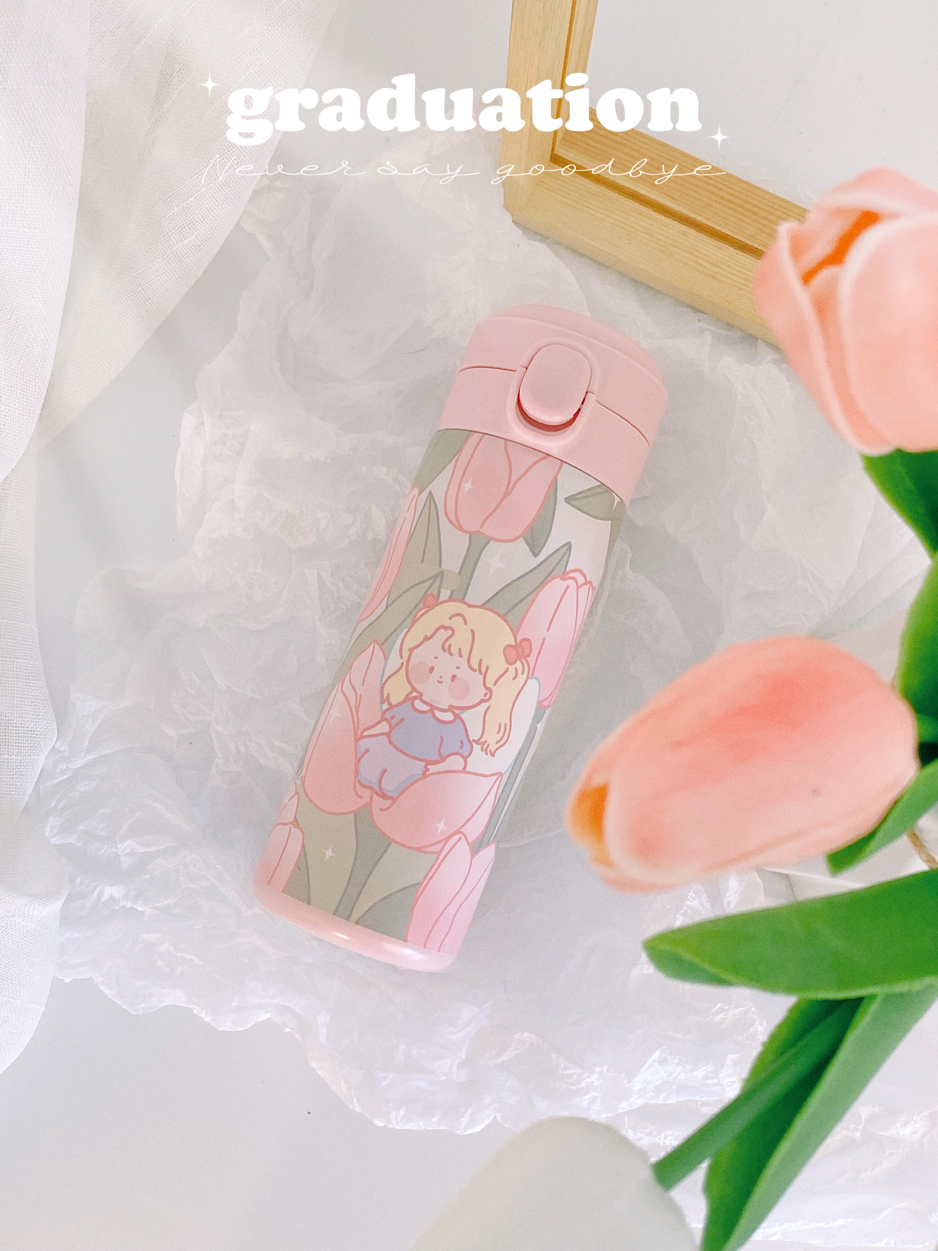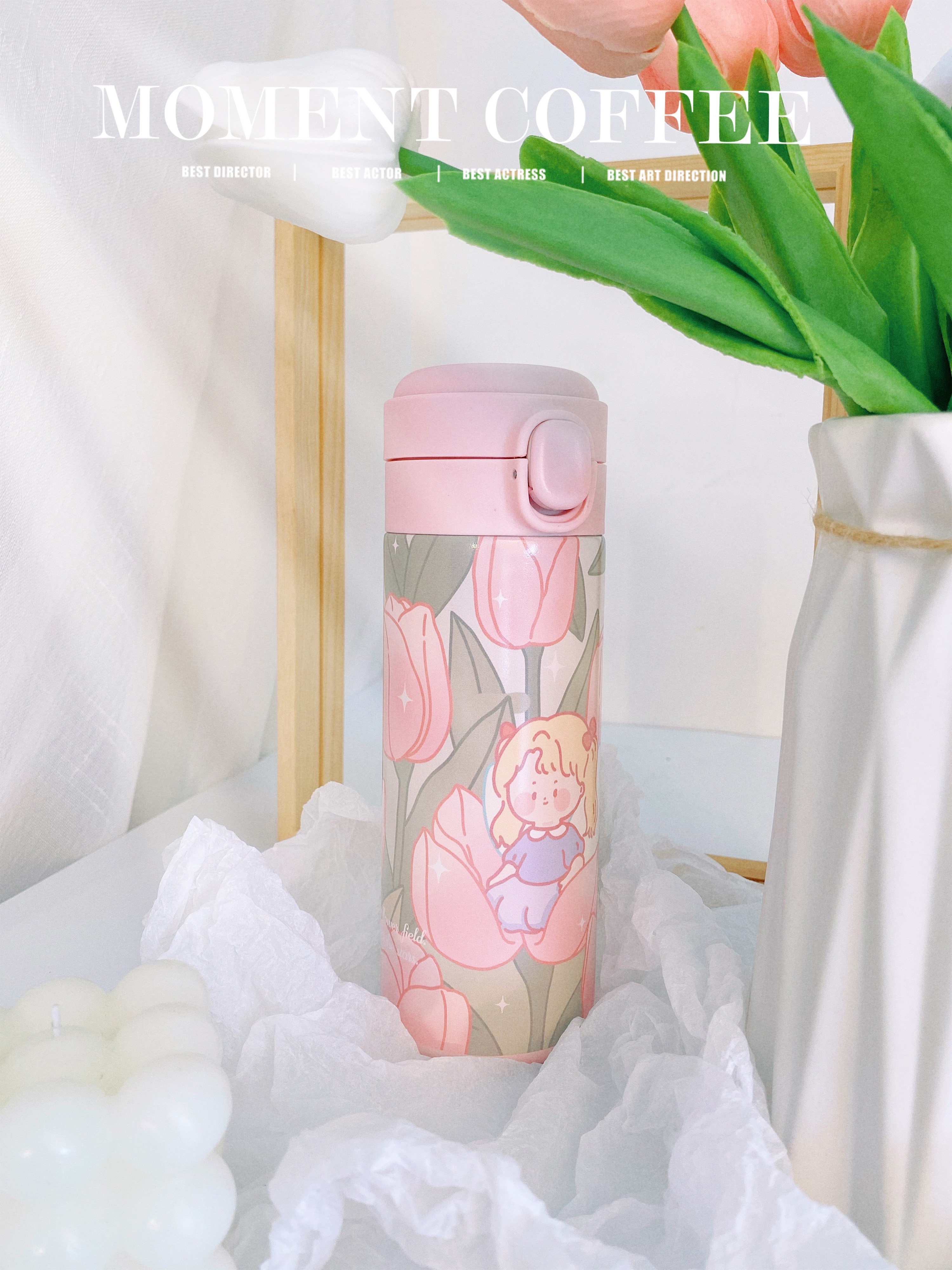 Original Wild Anecdote Original Tulip Insulation Cup Cute And Gentle ins350ml Stainless Steel Straight Body Portable
