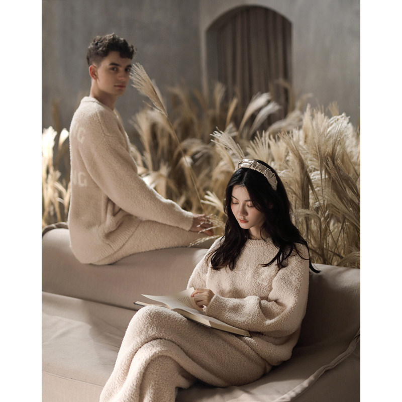 Coral Suede Lovers Pyjamas Women Autumn Winter Soft Cotton Half Suede Thickened Men's Home Conserved Winter Extras Wear Suits