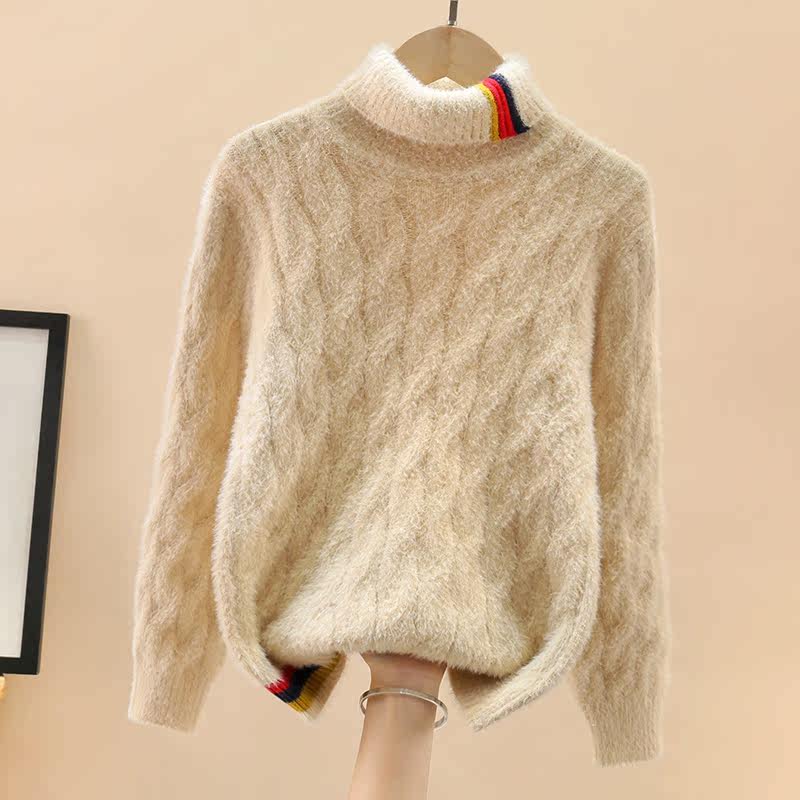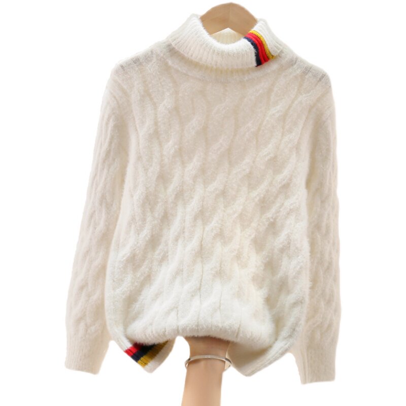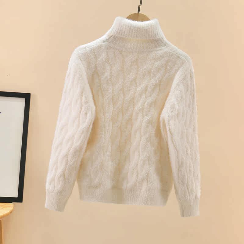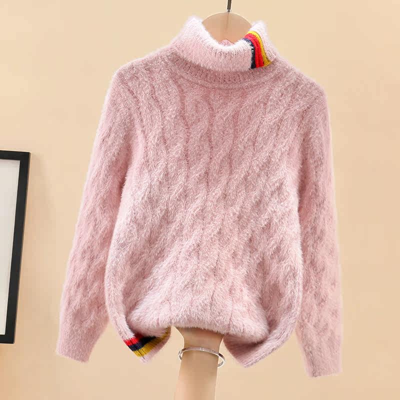 Girls mink fleece sweater 2021 autumn and winter new high collar plus velvet thick knitted sweater baby coat sweater Korean version