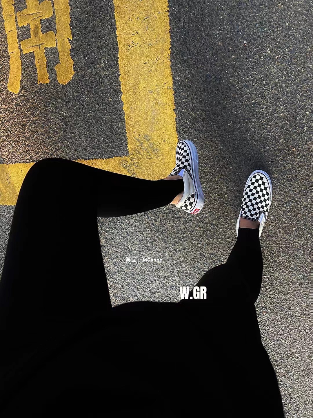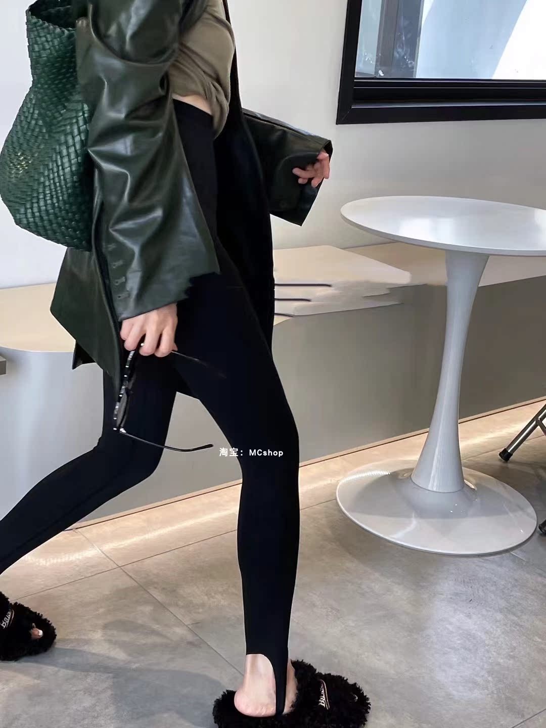 2022 South Korea Spring Autumn INS Hot Girl Tight Inside Lap Pants High Waist Outside Wearing Yoga Movement 100 Hitch Black Stomatpants