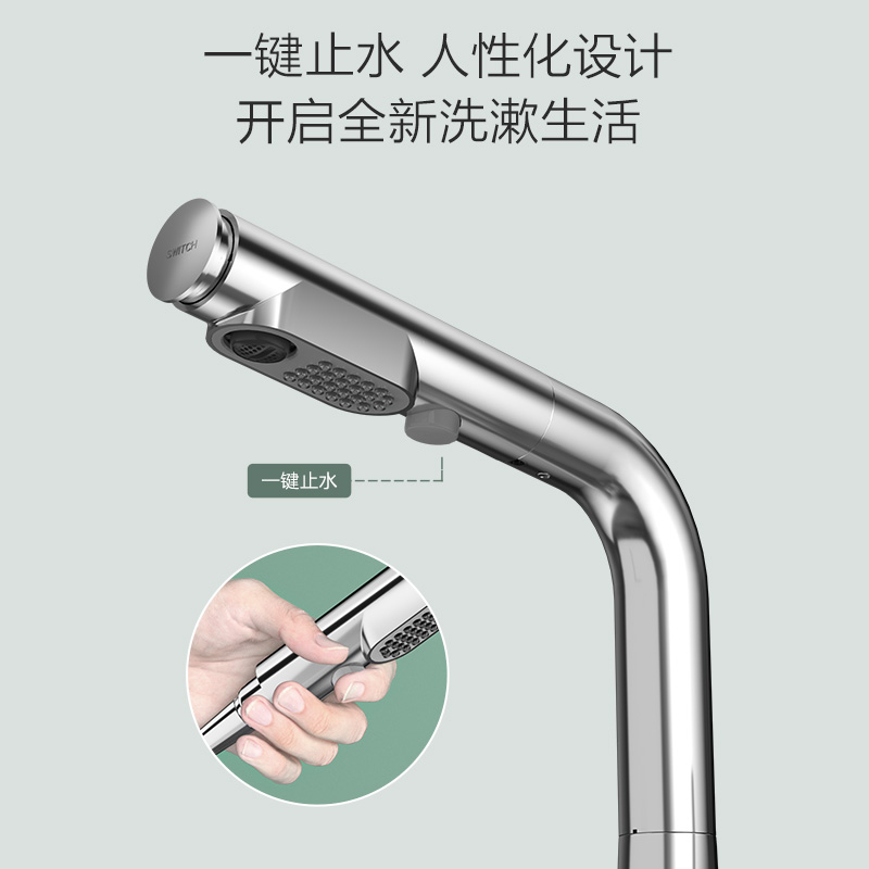 Silver-tone-one-key water-stop double-control pull-pull tap gun grey-one-key water-stop double-control pull-pull tap Ya white one-key water-stop double-control draw-pull tap Jacblack One-key water-stop double-control draw-pull tap