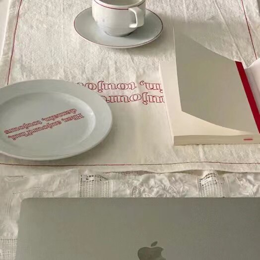 Korean in French embroidery pad French embroidered napkin white cover cuisine photo background cloth