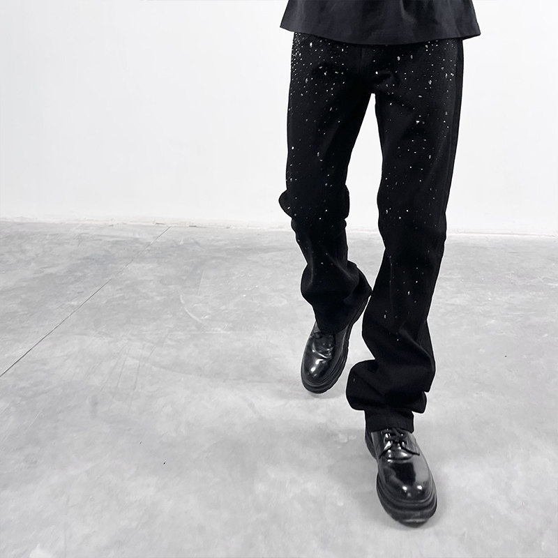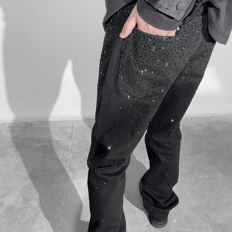 ROOLRREN 21FW heavy weight more than 3000 Swarovski washed loose micro-La full diamond vibe denim trousers