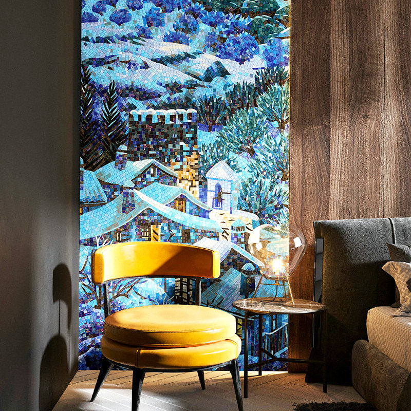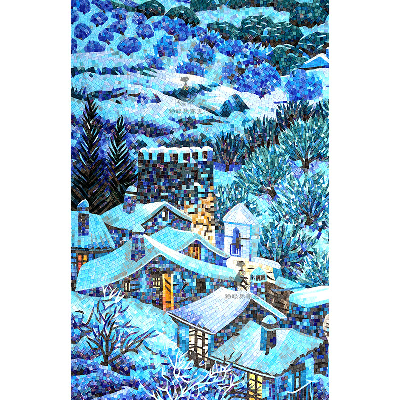 Cat's eye Mosaic tile background wall of the house in the snow Simple modern living room porch aisle clip art puzzle