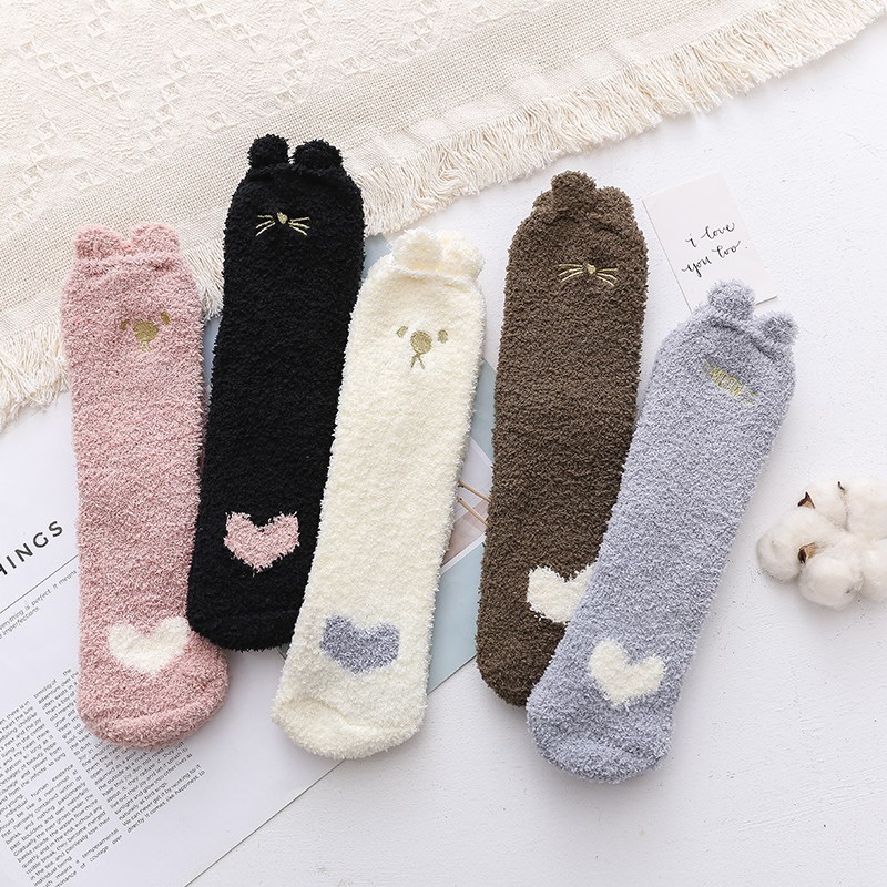 Coral Suede Socks Woman Spring Autumn Winter Warm Cute Sleeping Home Floor Moon Postpartum Furry Mid-Tube Socks