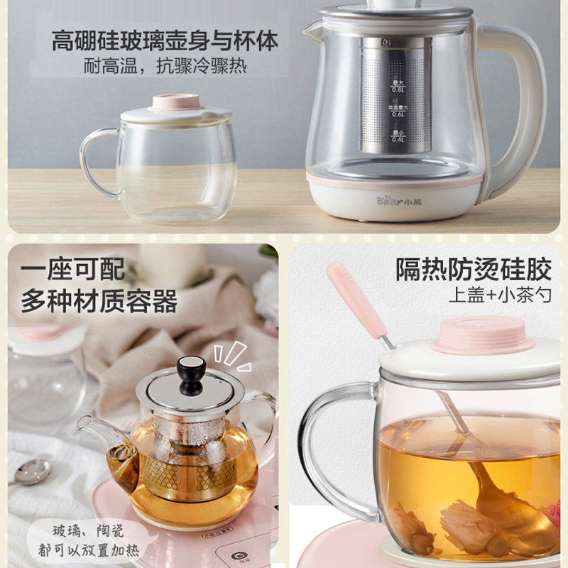 Small Bear Health Preserving Pot Boiling Flower Teapot Mini thermostatic home Multi-functional office glass sleeve Kettle Boiling tea Insulated Cup