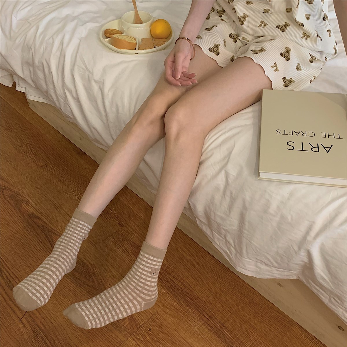 Fine Thin Strips Han Prints Cute Cartoon Little Bear Socks Children Spring Summer Students Thin Middle Cylinder Socks Long Cylinder Cotton Socks