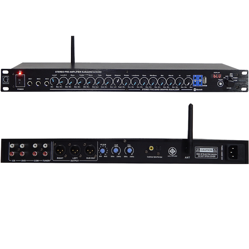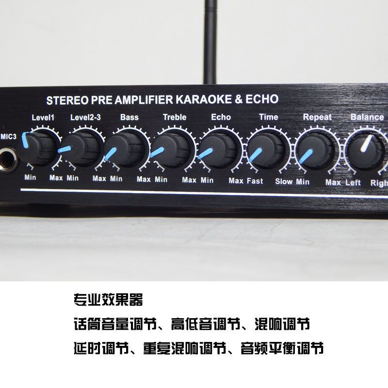 Seven-tone drum front-level effector professional family KTV anti-howling wireless Bluetooth MP3 coaxial bass stage audio