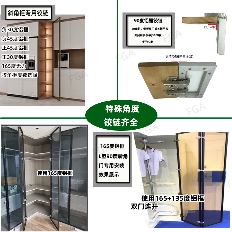 Corner cabinet bevel cabinet square head aluminum frame hinge