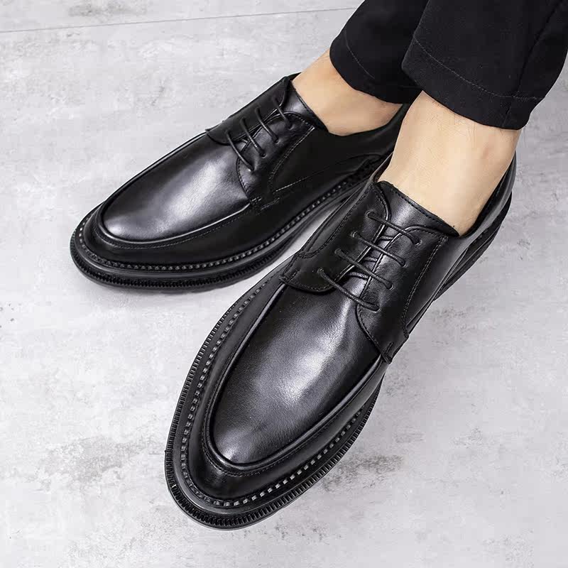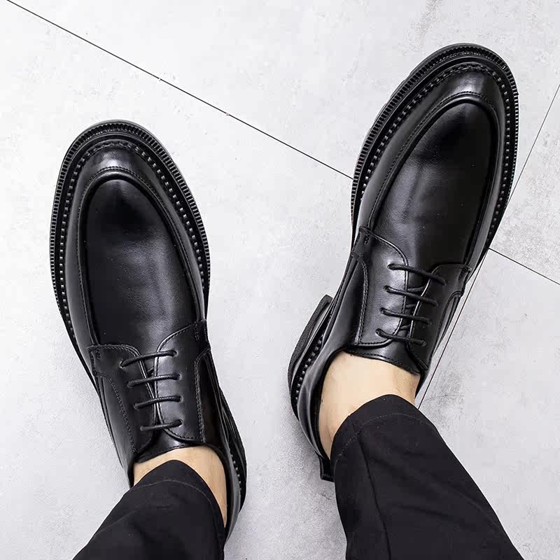 Autumn leather shoes men's leather business formal dress Korean version trend British pointed black lace all-match groom men's shoes