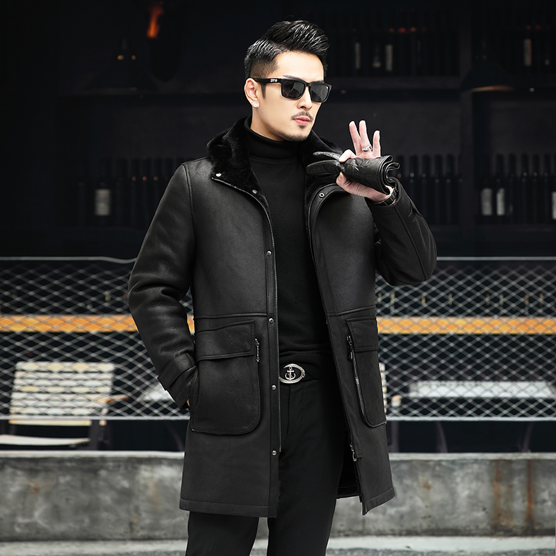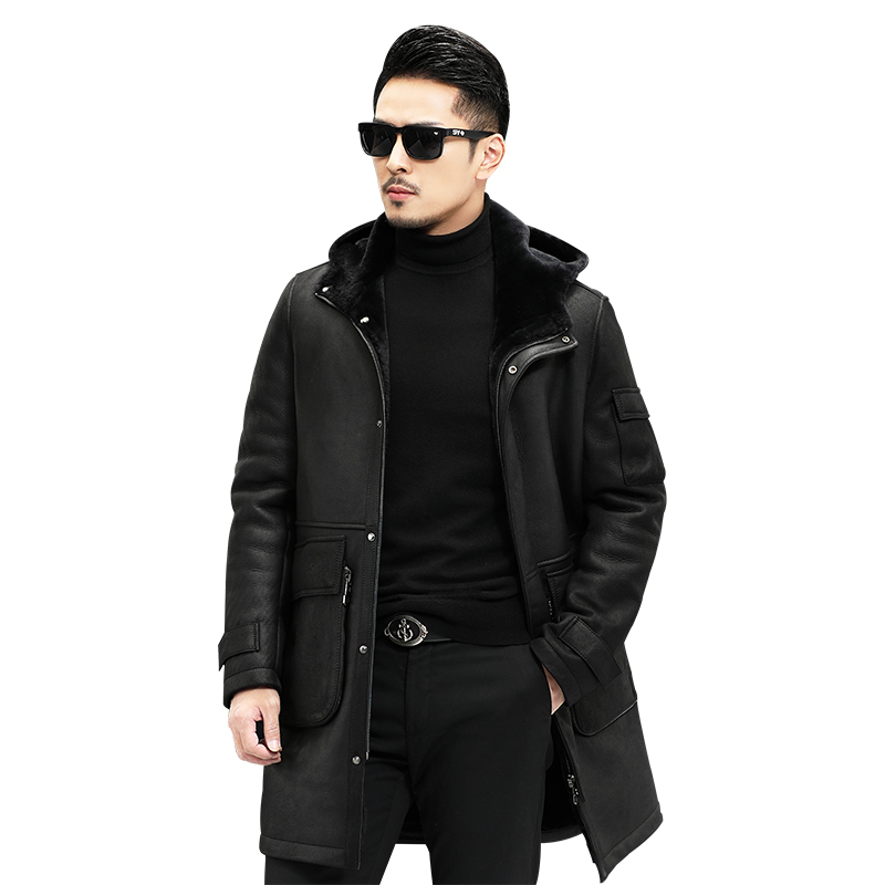 Fall/winter new Haining leather men's original ecological fur one men's long hooded sheep leather windbreaker