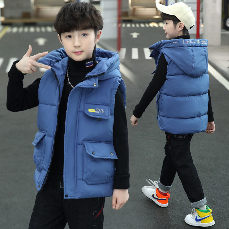 Boy Waistcoat Autumn Winter 2021 New Down Cotton Kan Shoulder CUHK Tong Cotton Thickened Vest Outwear Foreign Pie Waistcoat