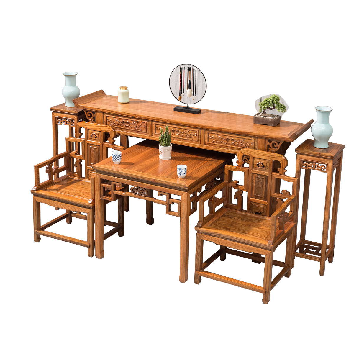 Atmospheric rural Zhongtang six-piece set of four-piece solid wood eight immortal table for table god table Chinese antique furniture porch table