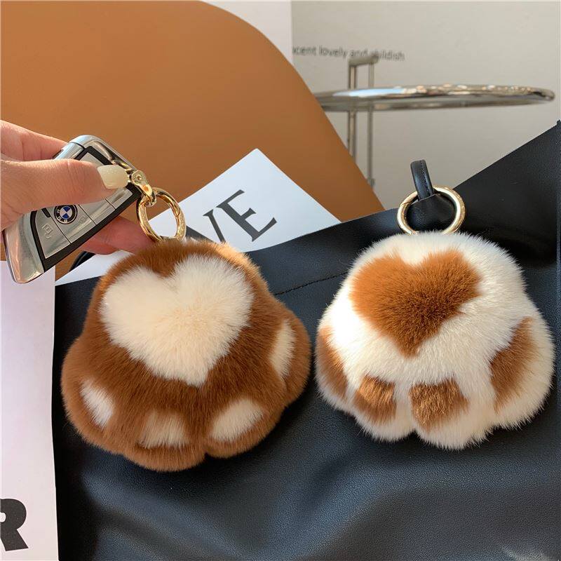 Japanese Kitty Claw Real Rex Rabbit Fur Car Key Clasp Pendant Plush Bale Bag to hang up Birthday Presents