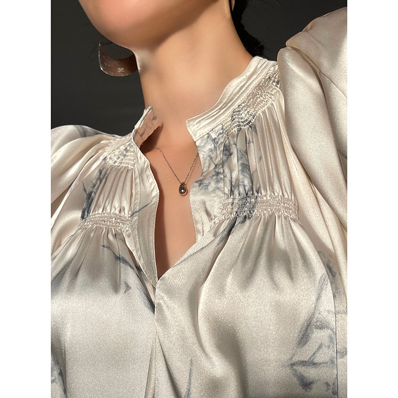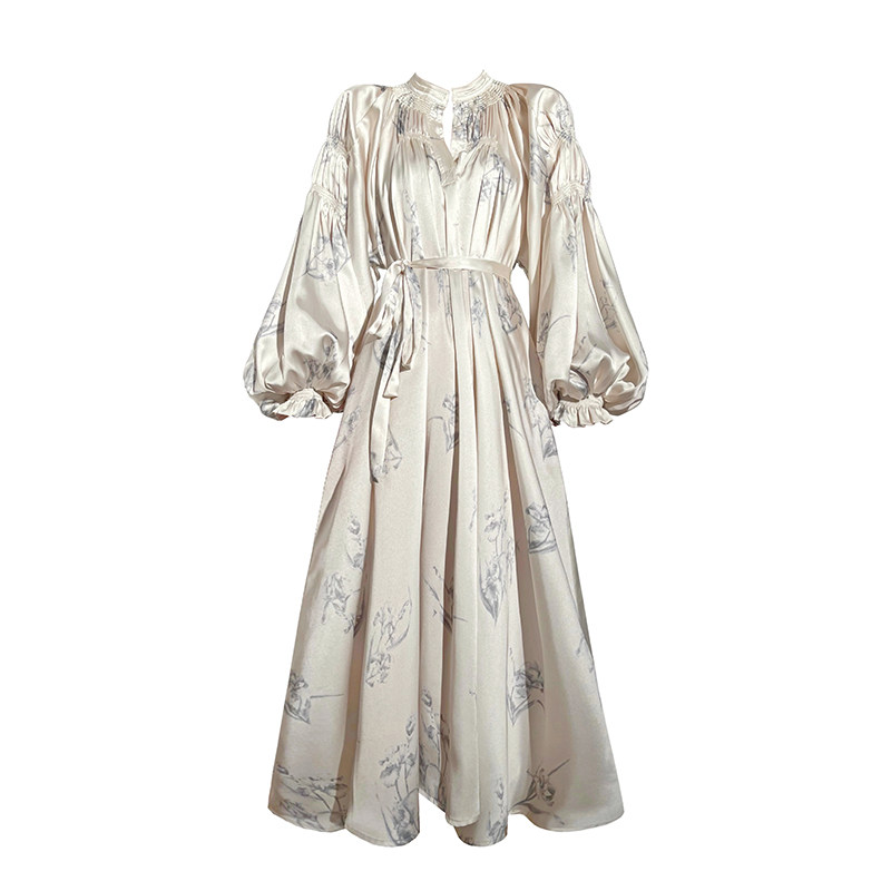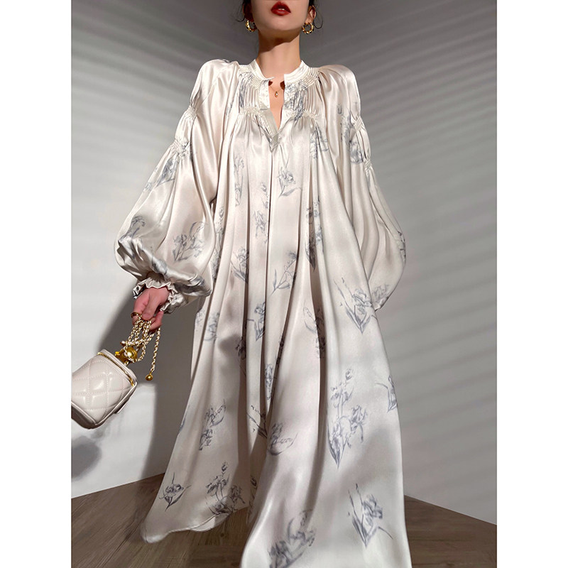 Aconiconi |-dyed printed imitation silk French dress autumn and winter loose waist niche design long skirt