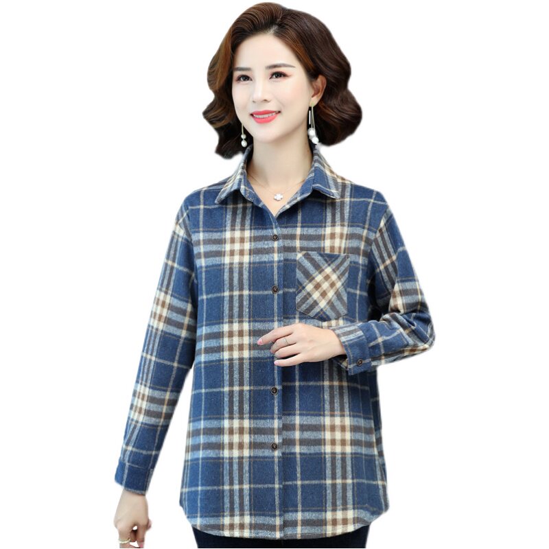 Yang Pie Grinding long sleeved shirt woman middle-aged old mother dressed in spring and autumn new large size shirt middle-aged women's thin coat