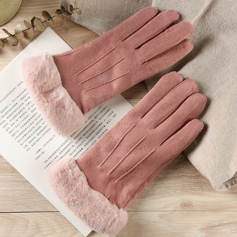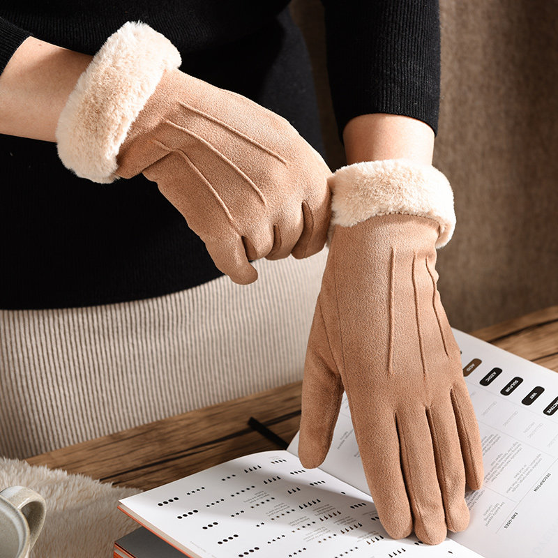 Japanese gloves ladies winter warm suede student plus velvet thickened cold-proof cycling driving touch screen