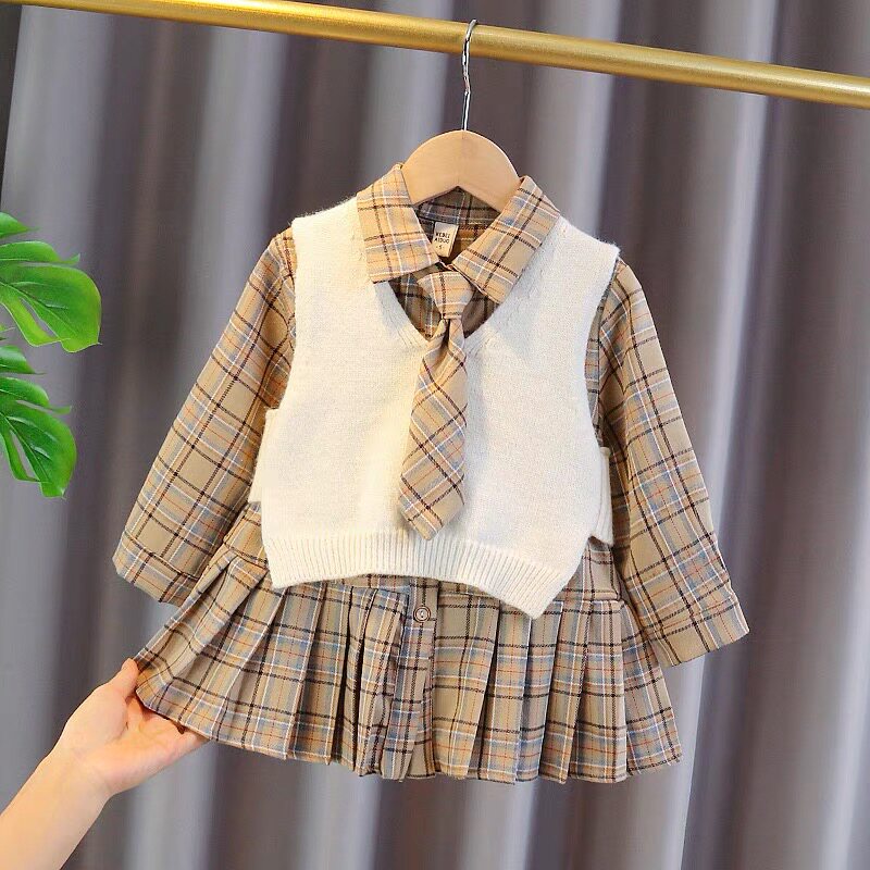 South Korean girl's dress spring and autumn 1 baby princess dresses 2 girls skirts 3 children trendy sets skirt 4 years of age
