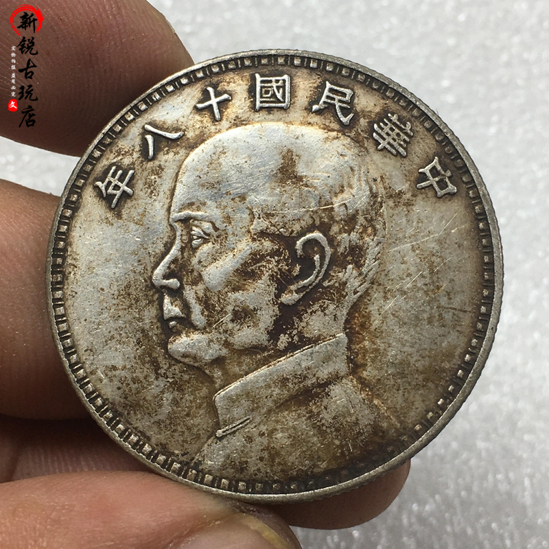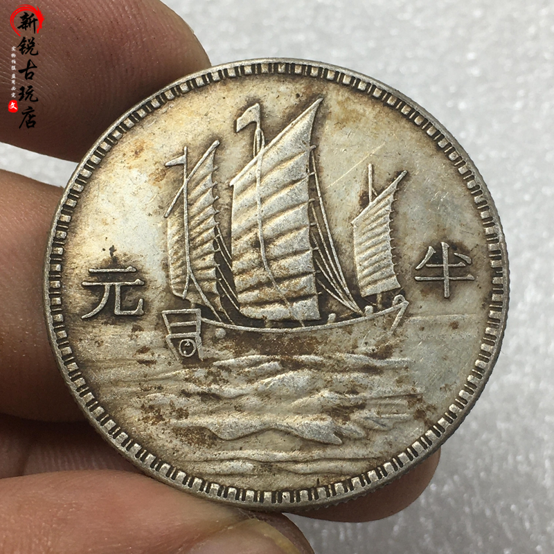 Ancient coin Silver Yuan half Yuan pentagonal Sun Xiaotou eighteen years Three Sailing Ocean Mechanism coin antique Longyang silver Yuan Collection