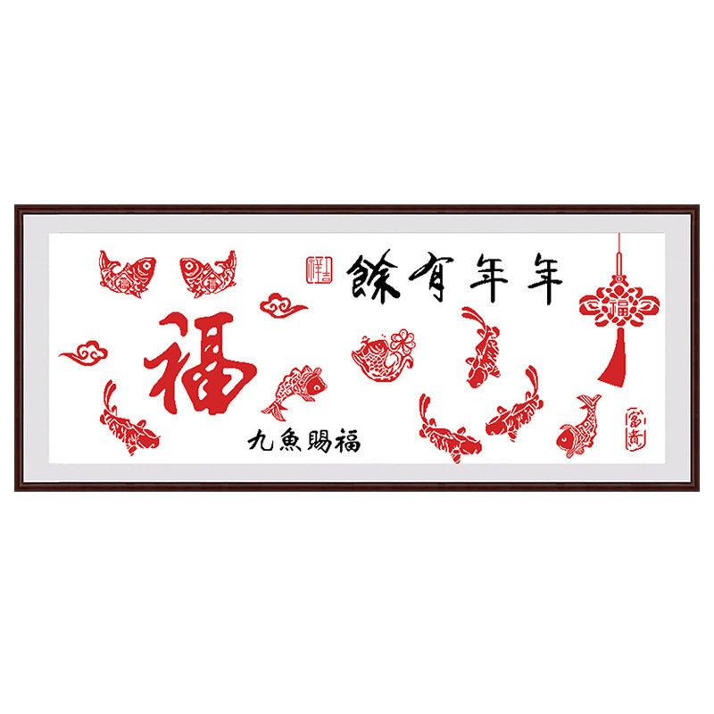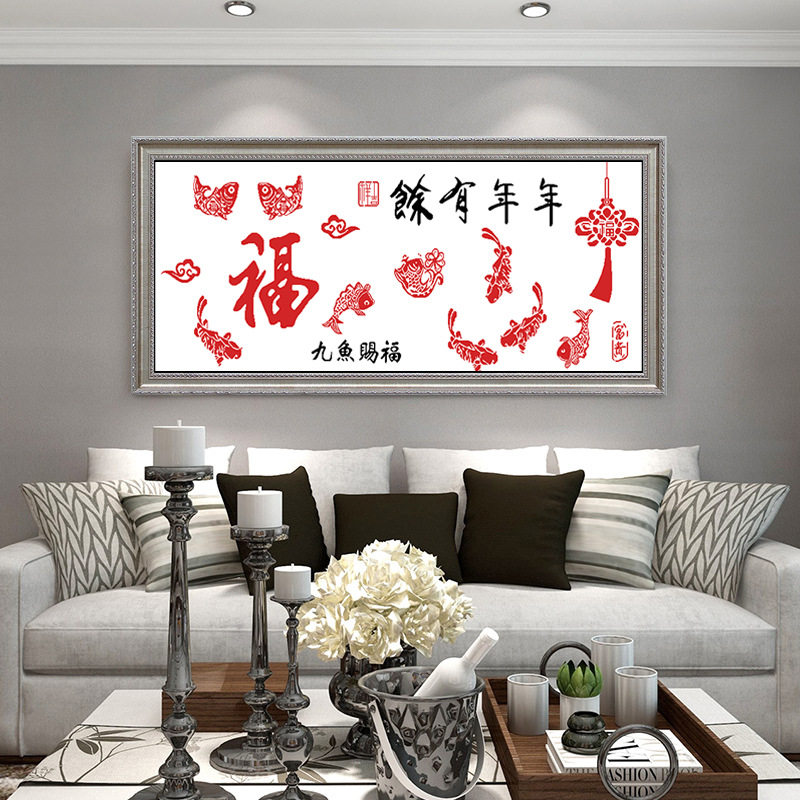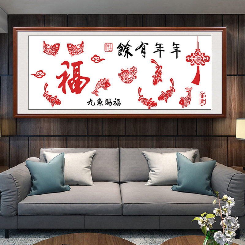 Year over year with cross stitch 2022 new line embroidered living room sharp fish fu simple and good embroidered new hand itself embroidered 2020