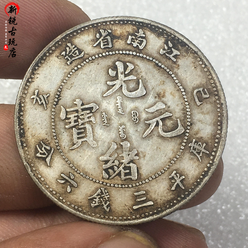 Ancient coin silver dollar Three-money 60% semicircle pentagonal light Xuyuan Baojiang Province The mechanism coins are modeled after the ancient Longyang Yinyuan