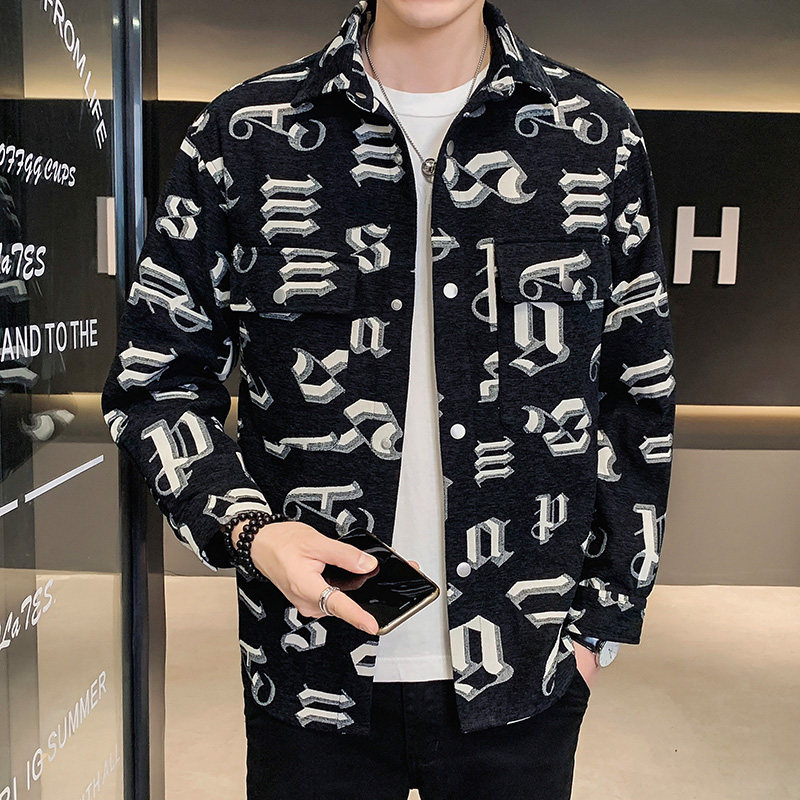 Long Sleeve Shirt Male Spring Autumn Season New Body Trend 100 Hitch Printed Jacket Men Thickened Casual Turn-over Shirt