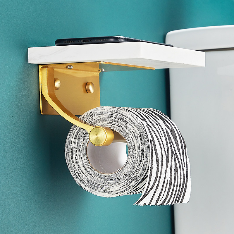 Punch-free toilet paper holder powder room mobile phone toilet paper rack toilet light luxury paper towel holder marble toilet paper holder