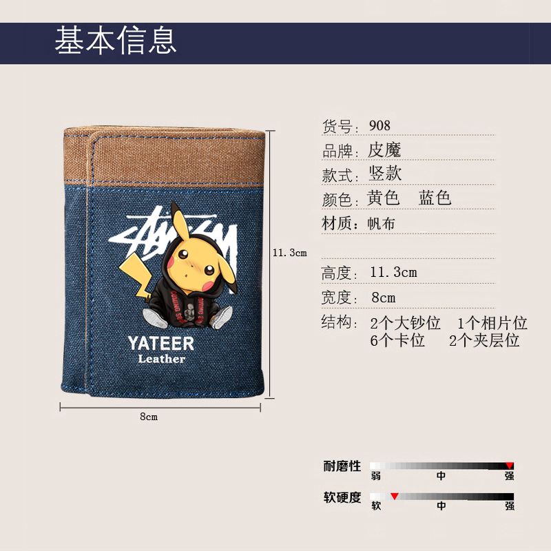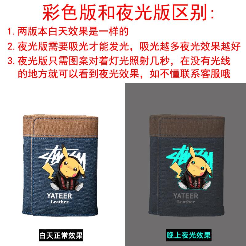 Luminous cartoon cartoon Cartoon Red Canvas Wallet for men and women Short-sum junior high school students fashion tide cards children small leather clips