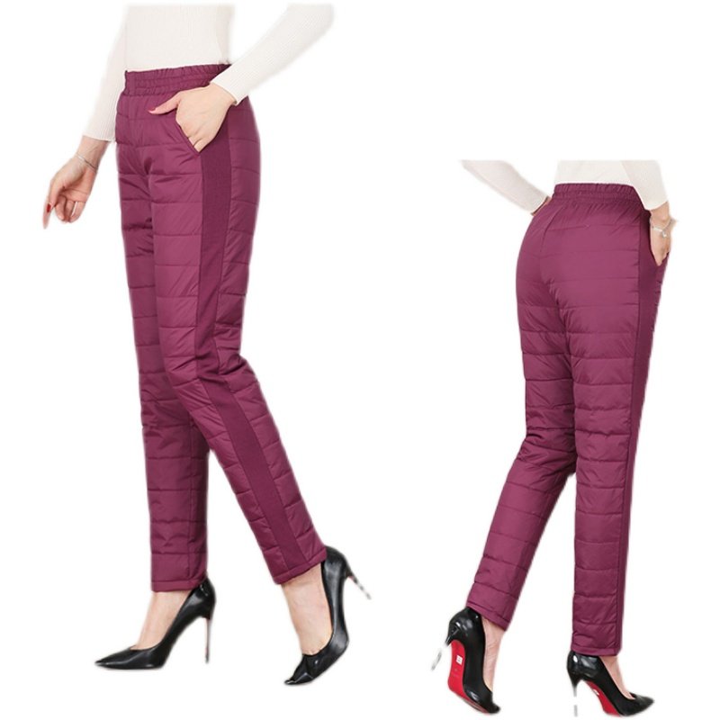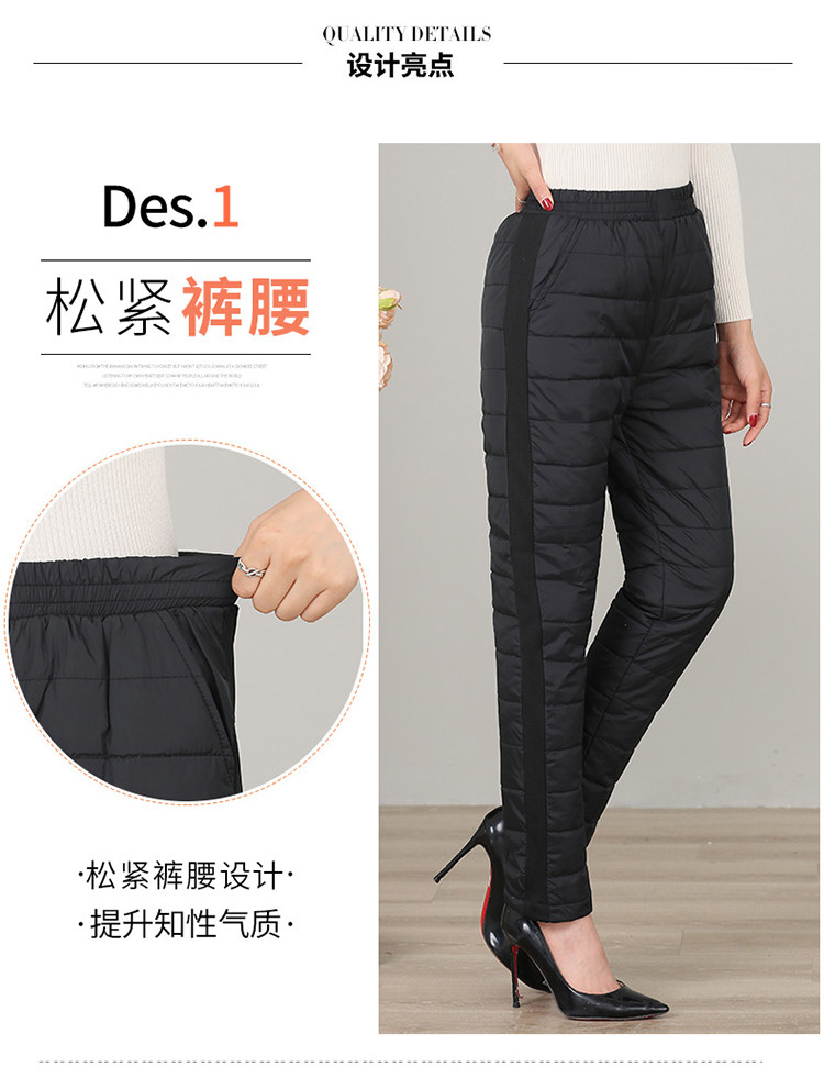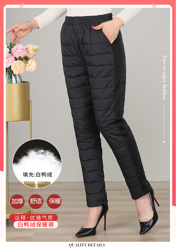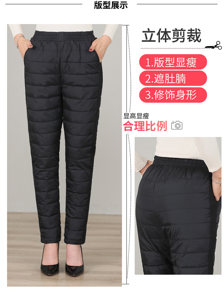 Winter middle-aged and elderly down pants wear high waist and look thin white duck down women's inner wear casual cotton pants thickened trousers