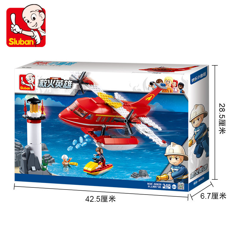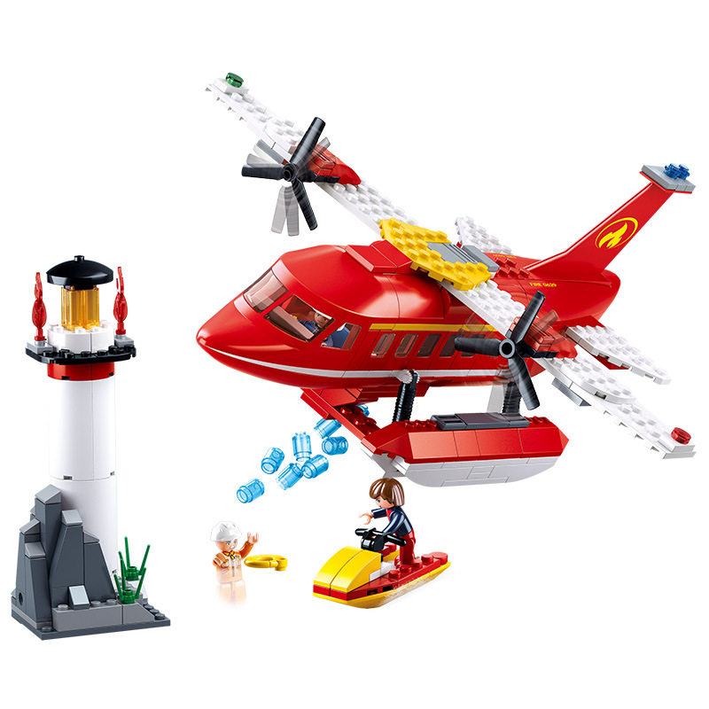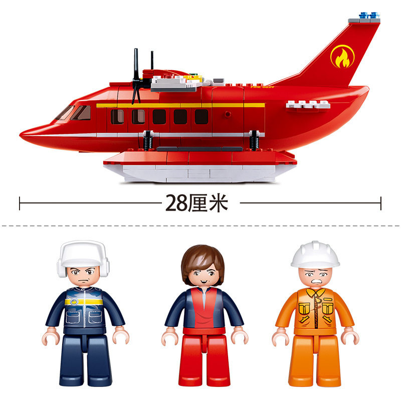Small Ruban 0629 Fire Series Water Firefighting Aircraft Assembly Model Boy Assembled Building Blocks Parquet Toys