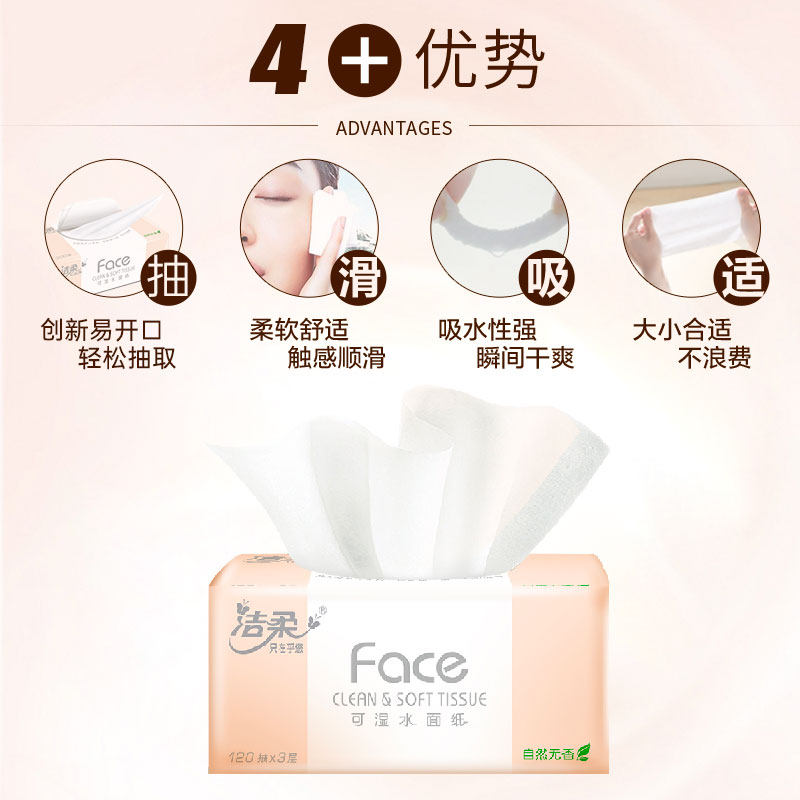Clean soft paper towels 3 layers 120 pumping wet water extractable toilet paper napkins household 9 packs of facial tissue household affordable packs