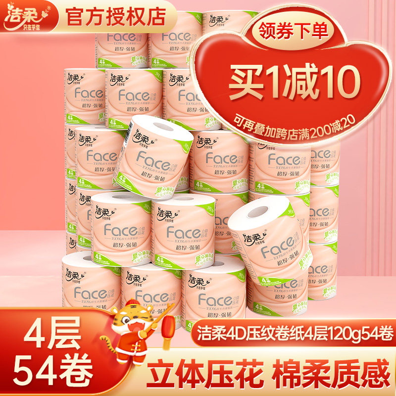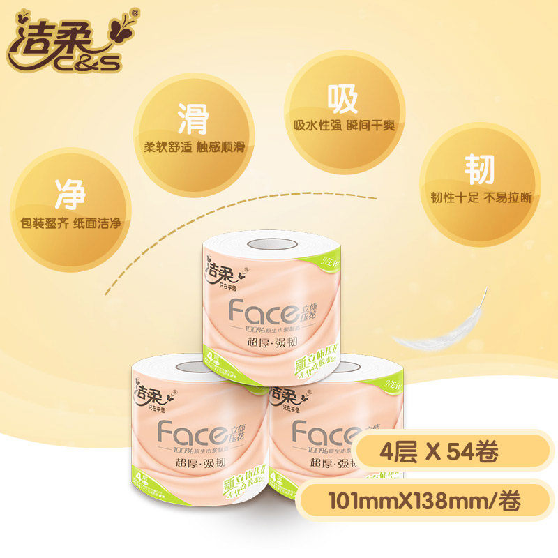 Clean and embossed drum paper toilet paper with core drum toilet paper toilet paper 54 volumes for a total of 2 boxes toilet paper whole box of family