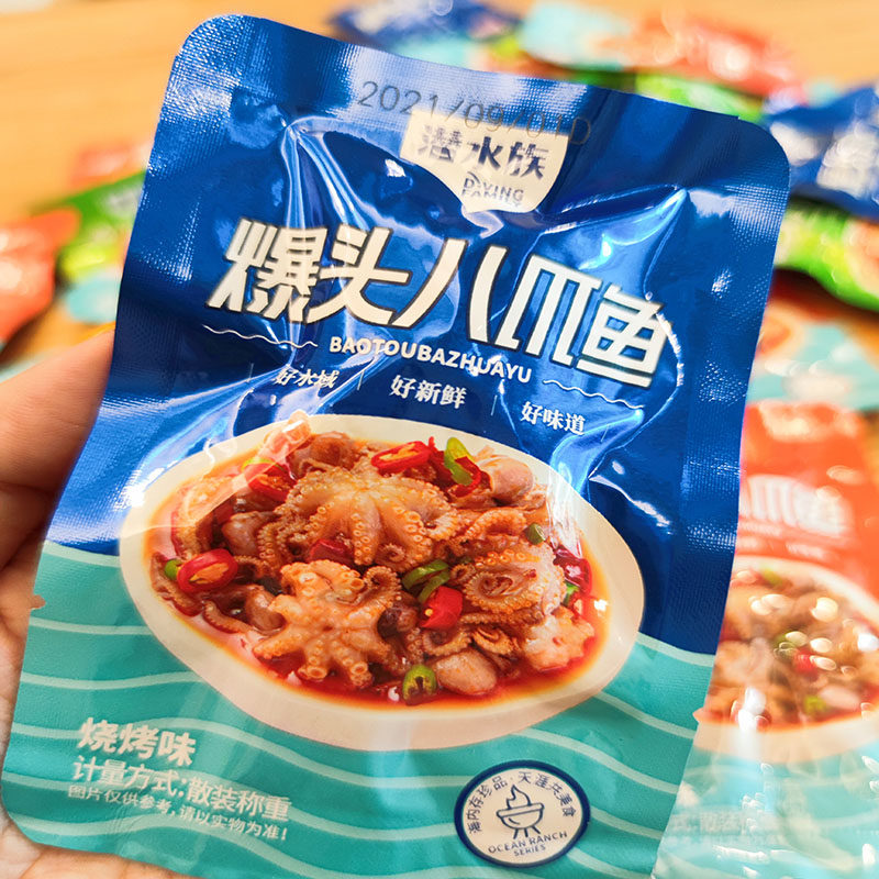 Head-popping octopus squid cooked seafood snacks snack spicy garlic barbecue Pleurotus eryngii ready-to-eat bags