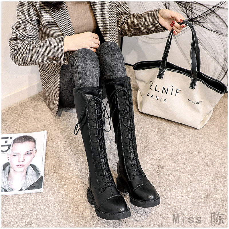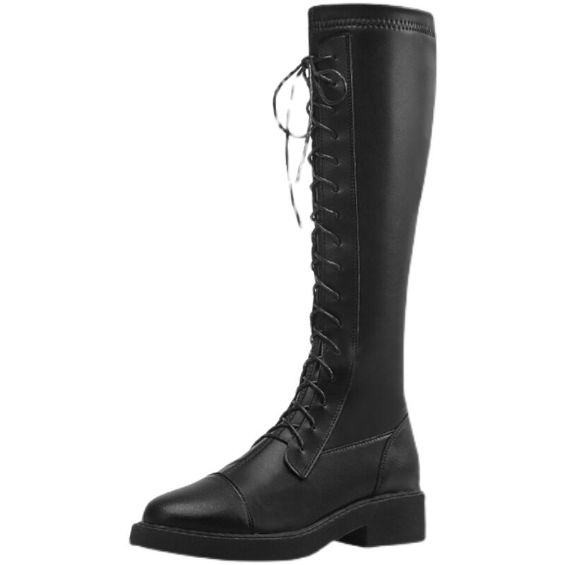 Leather boots women's knight boots 2022 autumn and winter tall elastic small lace-up inner heightening knee boots