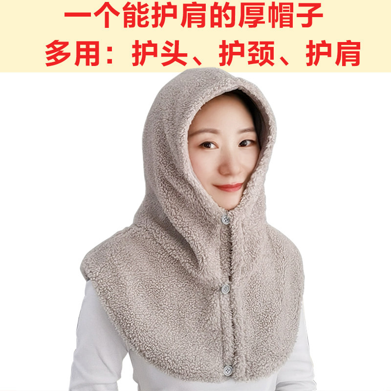 Thickened warm autumn and winter shoulder guards and neck guards hats all-in-one velvet guards cervical vertebrae small shawls shoulder vests cold-proof outside